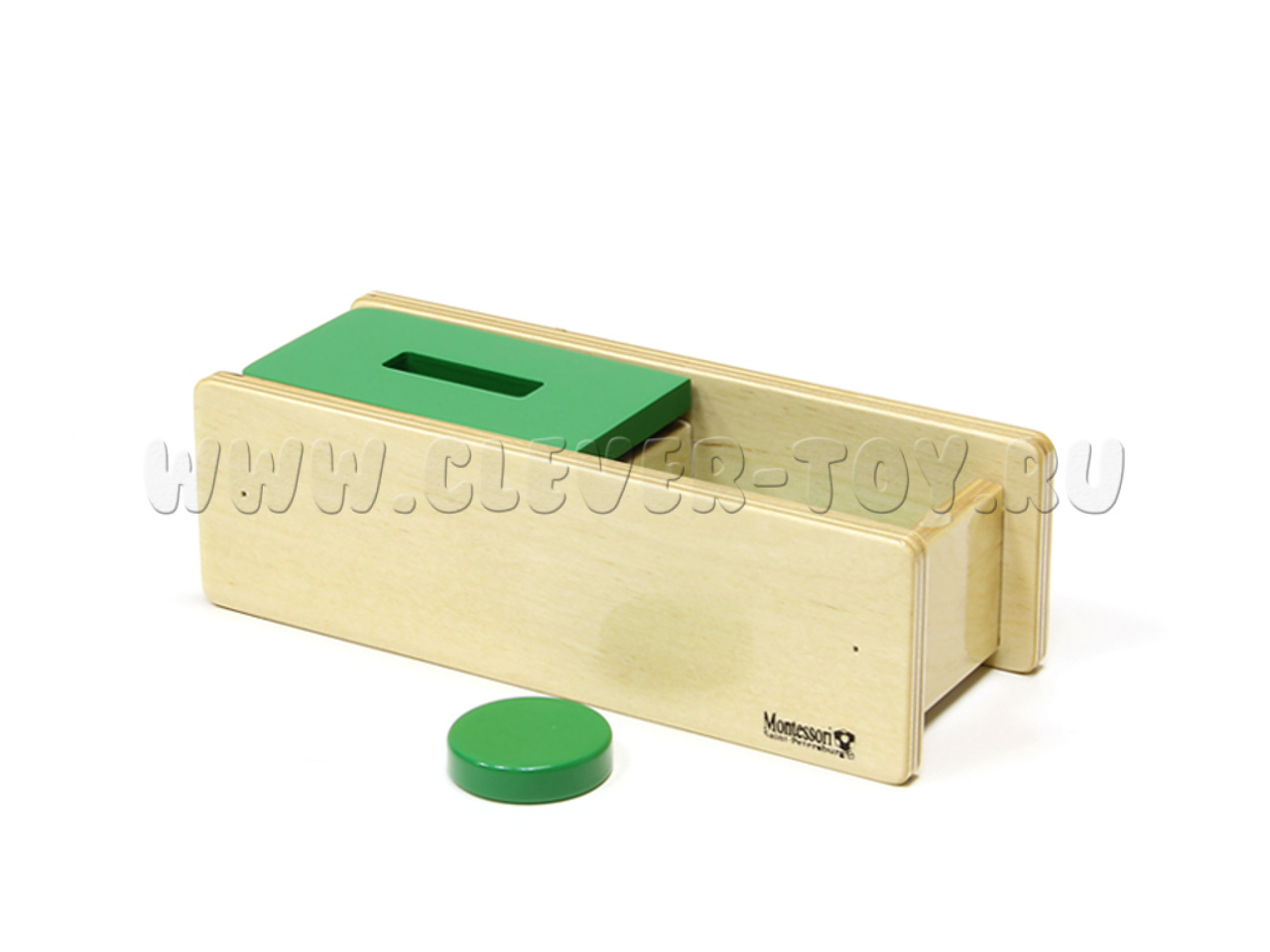 Деревянная коробочка размером 21х8х6,5см с деревянным диском диаметром 4см.