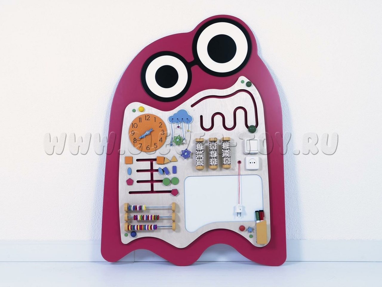 Бизиборд "Вит" предназначен для детских образовательных учреждений и помогает изучать геометрические фигуры (форму, количество углов, вид, цвет и особенности). Задания составлены по принципу "от простого к сложному". Например, при изучении геометрических фигур можно тренироваться в счёте, определяя количество углов. Также можно рисовать запомнившиеся фигуры или играть в крестики-нолики, вращая фигуры.