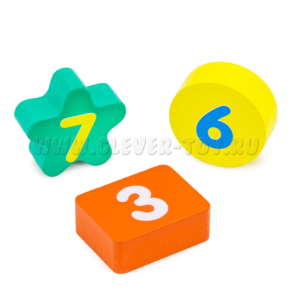 Фигуры расположены вокруг циферблата. С обозначением цифр от 1 до 12, разной формы и разных цветов. Поможет малышу познакомиться с геометрическими фигурами, развить логику, мелкую моторику.