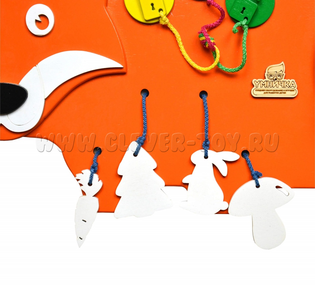 • шнуровку, которая способствует развитию фантазии, мелкой моторки и усидчивости непоседы;