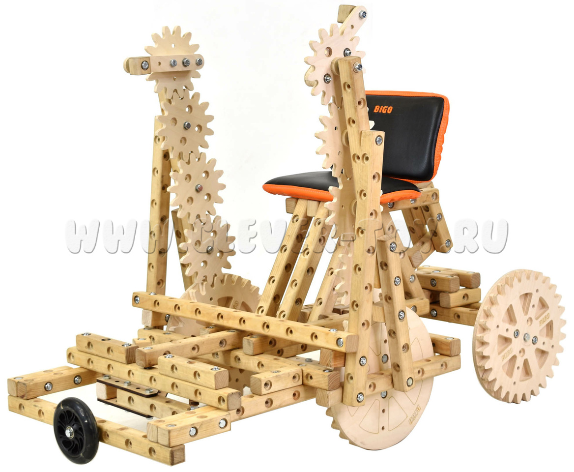 Bigo - это не просто игра-конструктор, это развивающая мастерская для ребенка, которая позволяет детям и взрослым создавать и строить собственные аналоги транспортных средств, механизмов. С набором “дошкольник” своими руками можно собрать более 45 различных моделей по инструкции и неограниченное количество по собственному плану.