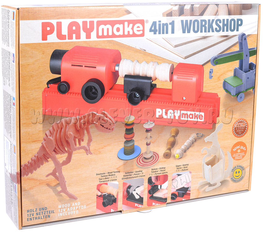 PLAYMAKE - многофункциональный станок по дереву для детей и взрослых. Этот замечательный модульный конструктор-трансформер преобразуется в четыре станка: