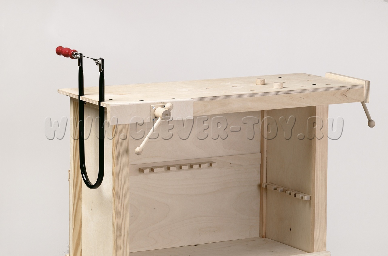 Размеры рабочей поверхности 77 х 30 см. Верстак изготовлен из натурального дерева.