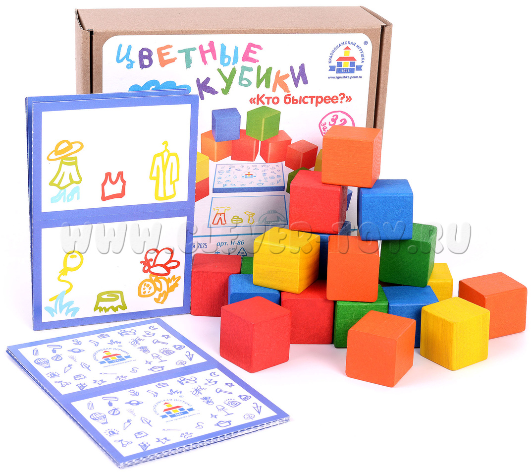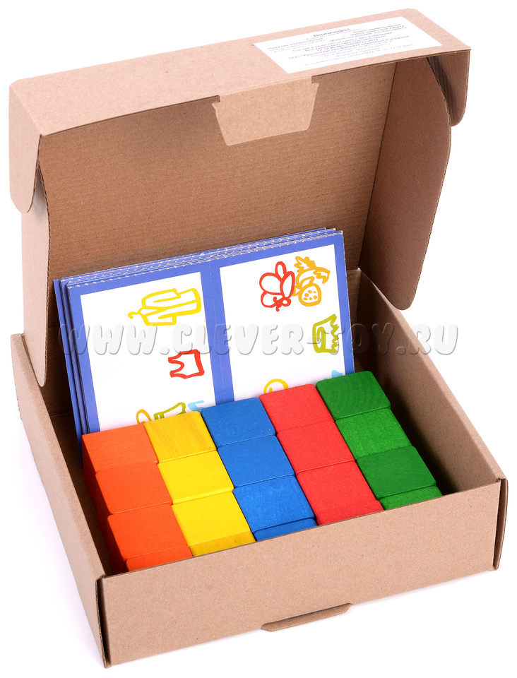 • 20 цветных деревянных кубиков,