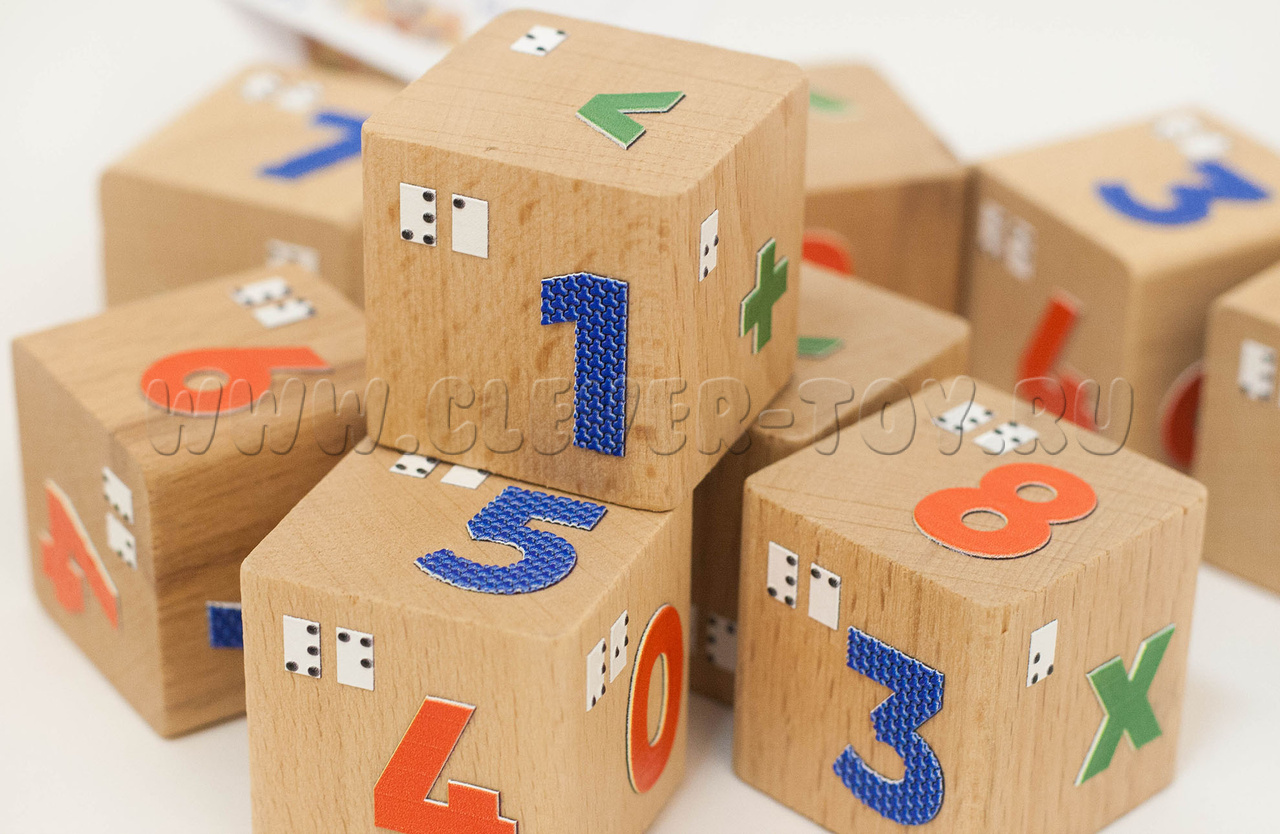Кубики деревянные со шрифтом Брайля "Цифры" (остатки)