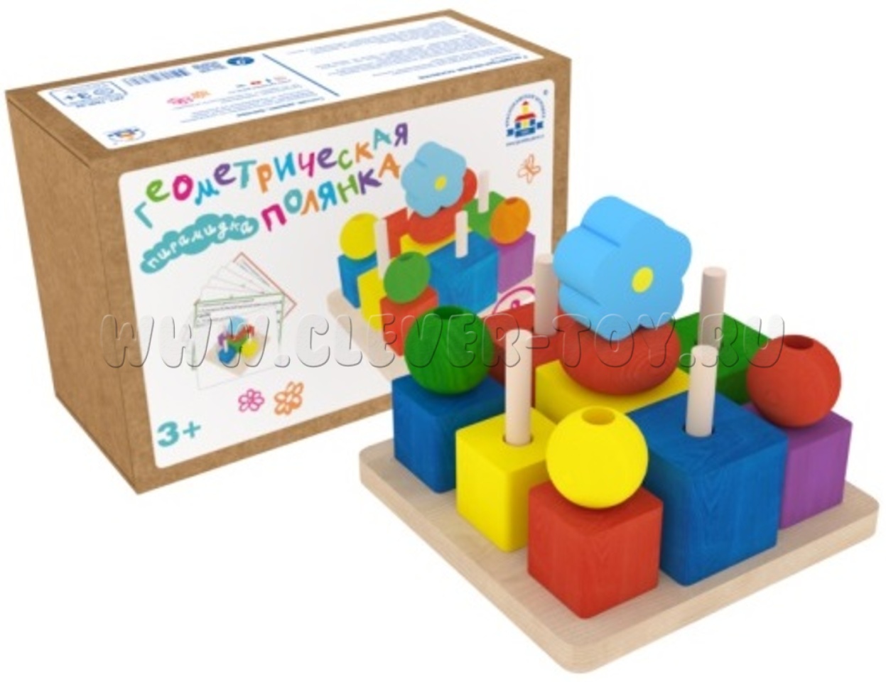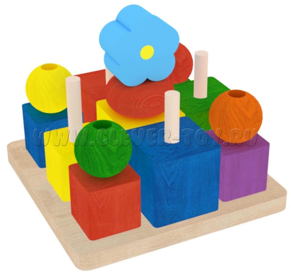 Пирамидка деревянная "Геометрическая полянка"