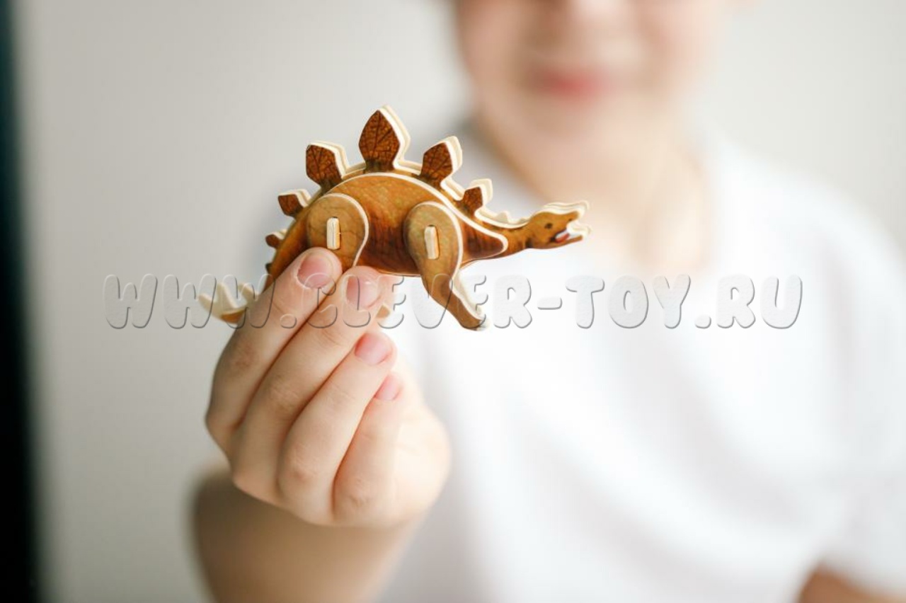 Пазл деревянный 3D. Стегозавр. Серия Мини-животные. Размер 11,5х18,5 см.
