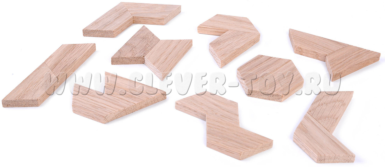 Головоломка состоит из 9 элементов и шестигранной коробочки.