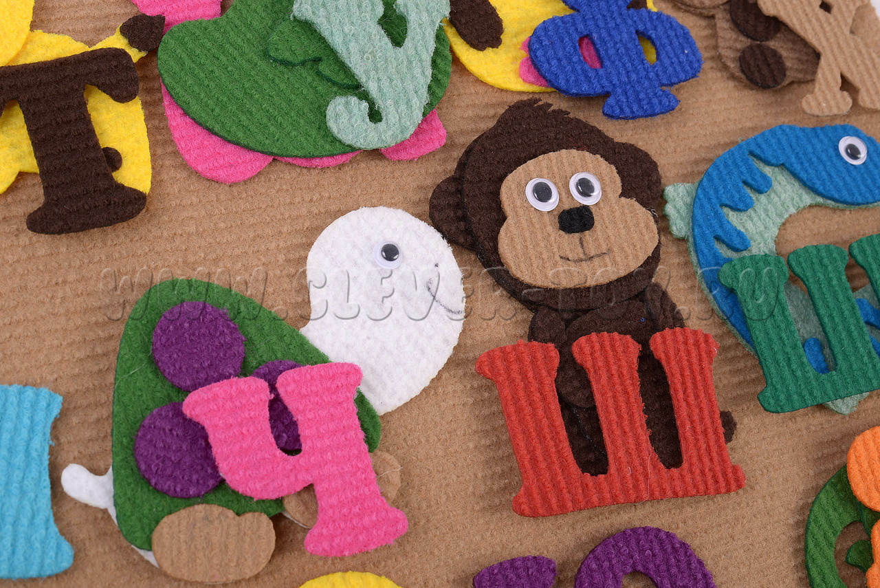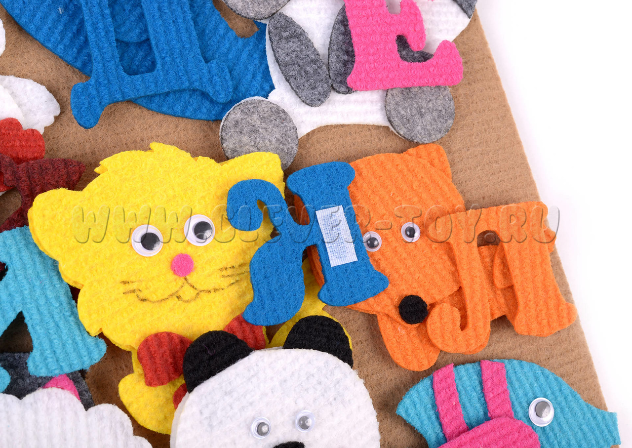 Реалистичные фигурки из современного прочного яркого материала - ковролина - помогут вашему малышу легко усвоить алфавит. В паре с каждой буквой русского алфавита в наборе есть фигурки животных, рыб и птиц, названия которых начинаются на эту букву.