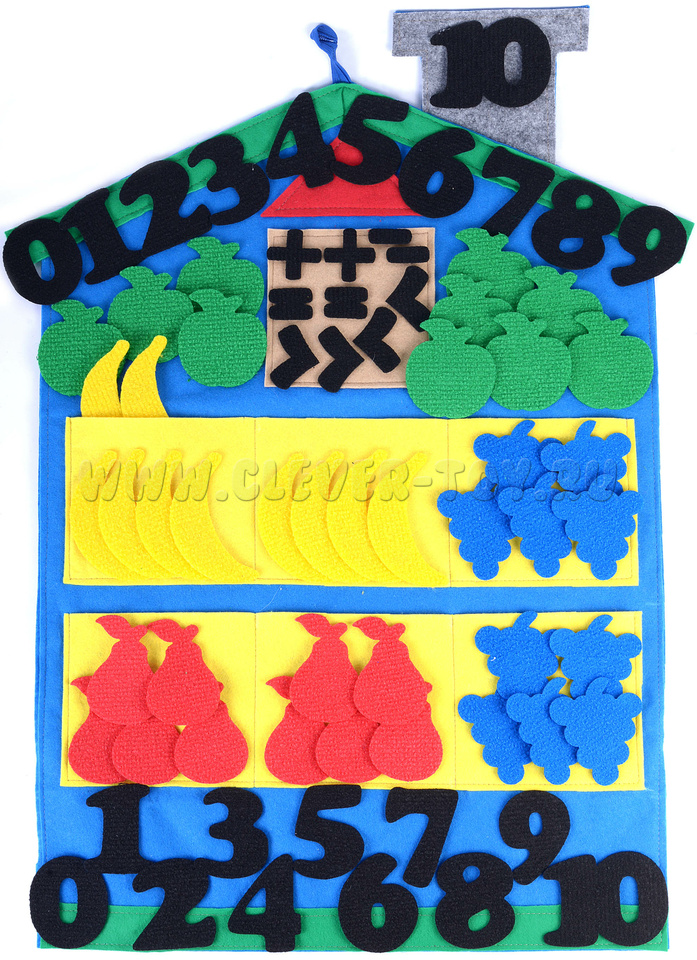 • игровые элементы в виде фруктов яблочек (10 шт.), винограда (10 шт.), груш (10 шт.), бананов (10 шт.)