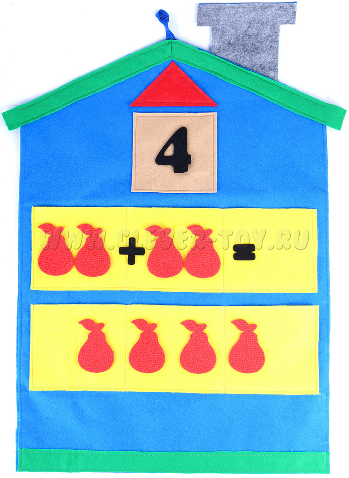 Фетровое пособие "Состав числа (дом)" поможет родителям и воспитателям в обучении детей счёту и простым арифметическим действиям. Яркая и мягкая аппликация на липучках является многоразовой.