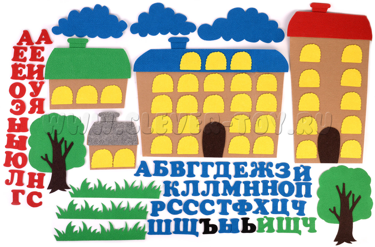 с серой крышей - для беззвучных букв (размер: 15х17 см).