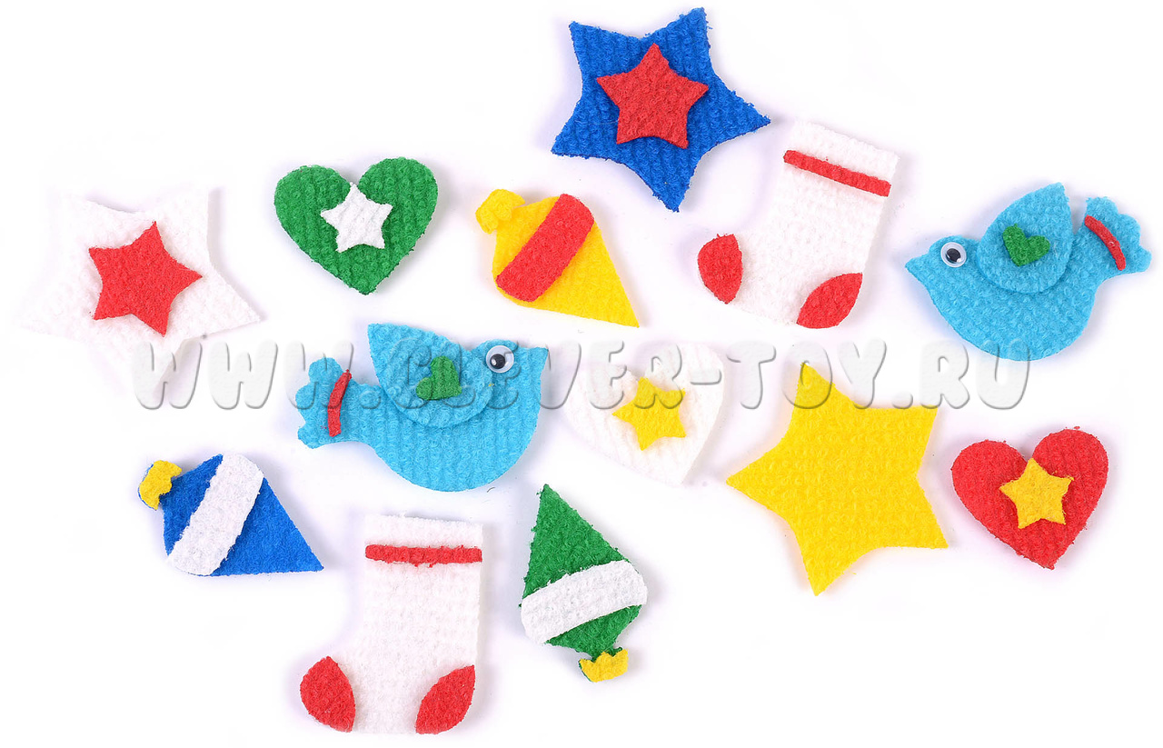 • Фигурки в виде елочных украшений: птички, сердечки, рождественские носочки, сосульки, звездочки (13 шт.).