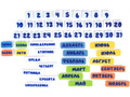 • игровые элементы: числа от 1 до 31, элементы с названиями дней недели, месяцев, времён года и т.д.