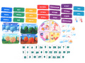 - Таблички, обозначающие времена года (4 шт.), годы (4 шт.), месяца (12 шт.), дни недели (7 шт.), числа (31 шт.), погоду (11 шт.), температуру (2 шт.), время суток (4 шт.).