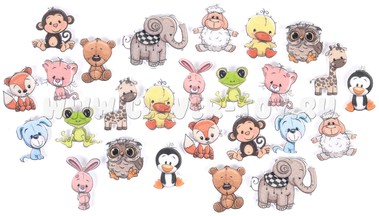 • 35 забавных зверушек из фетра – все представлены одинаковыми парами, есть также пары, отличающиеся друг от друга позами – совята, слонята, жирафики, бегемотики, обезьянки, собачки, мишки, овечки, лягушки;