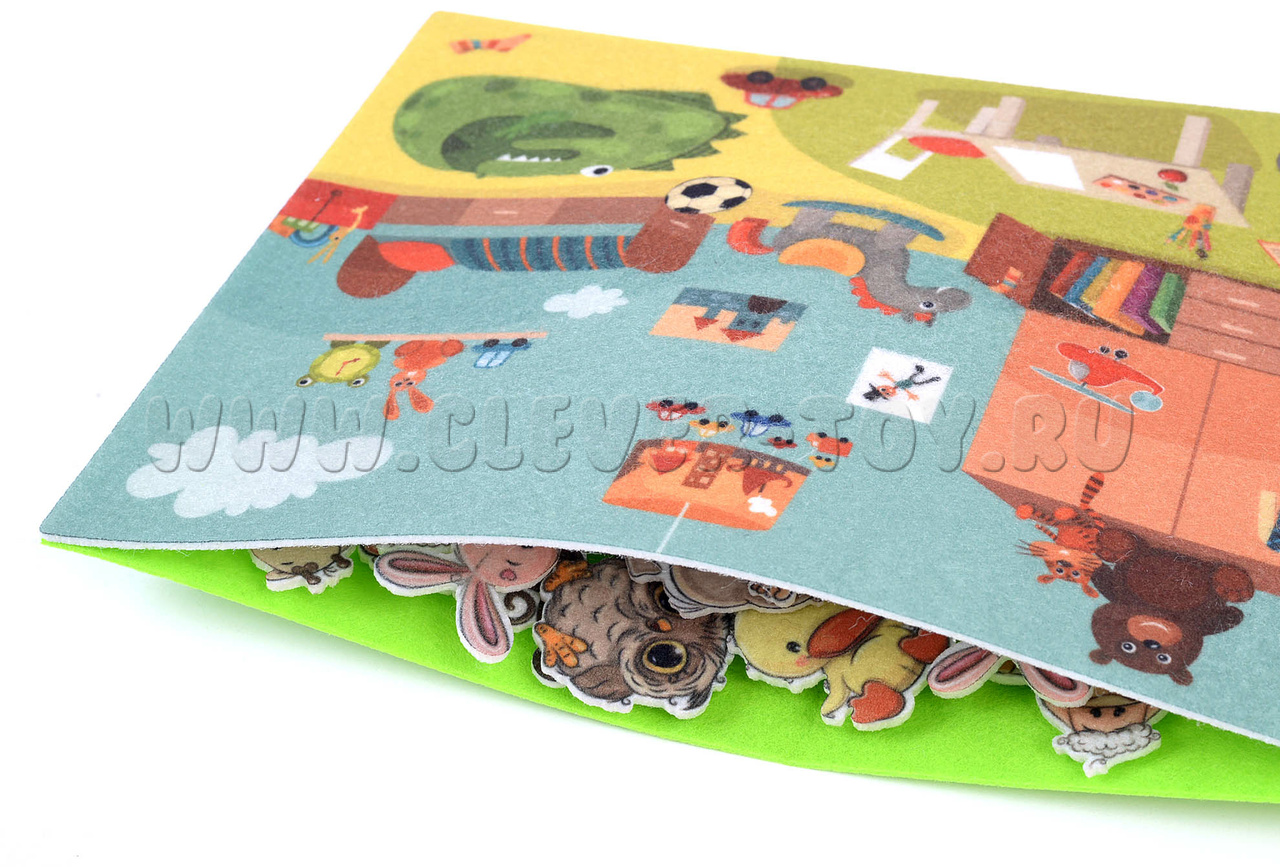• тематическое игровое поле в виде детской комнаты, куда помещаются все мягкие игрушки на липучках;