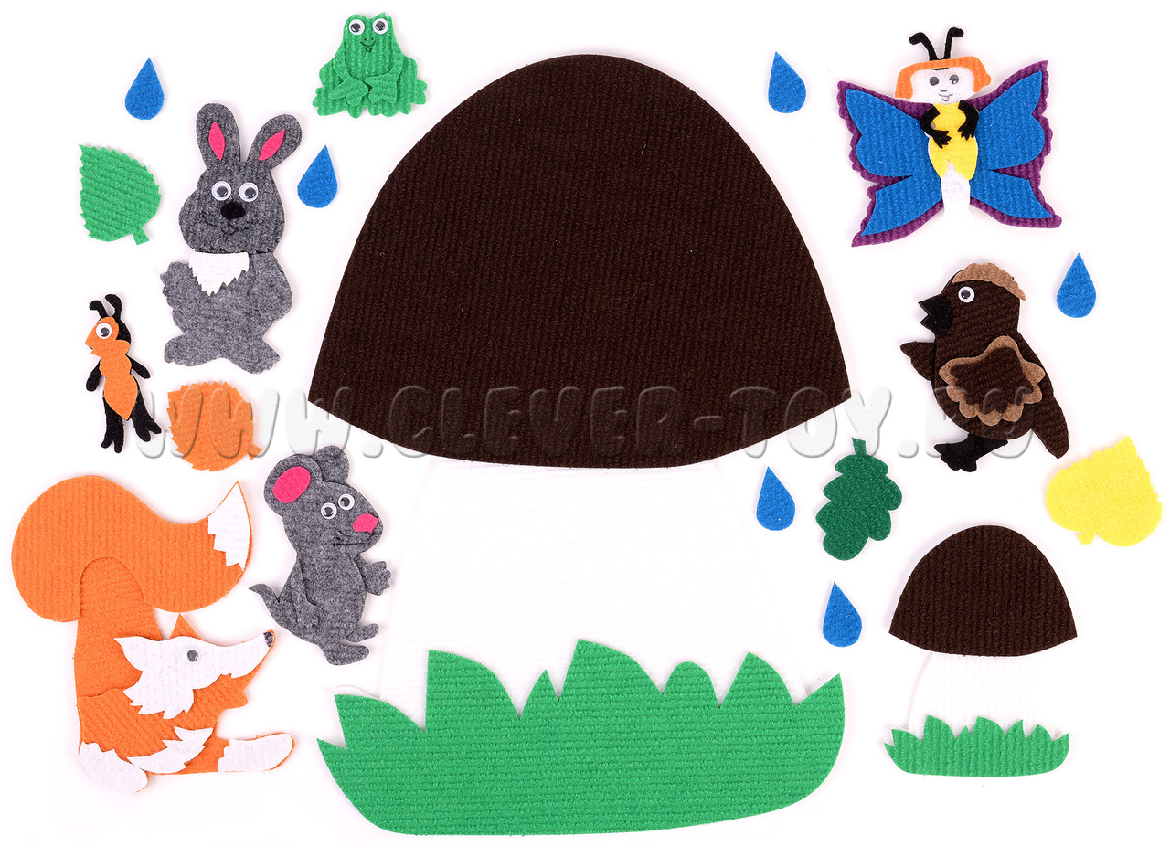 Набор «Под грибом» рекомендован специалистами дошкольного образования, используется в детских садах и развивающих центрах, а теперь доступен по выгодной цене для домашнего использования и для самостоятельной игры детей.