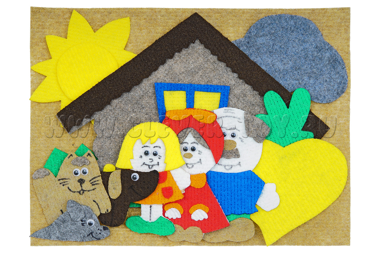 Игра представляет собой ковролиновый кукольный театр на плоскости. В таком, первом для вашего ребёнка, театре, можно не только познакомиться с героями любимой сказки «Репка», вспомнить сюжет сказки, но и самому стать маленьким актёром или даже режиссёром новой волшебной истории.