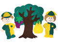 • герои – мальчик и девочка (каждый по 25*15 см); предметы – трактор (20*15 см), дерево (30*30 см), корзина (26*26 см);