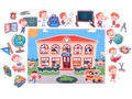 • 8 фигурок учеников с предметами-символами разных уроков – химия, физкультура, чтение, рисование и др.;