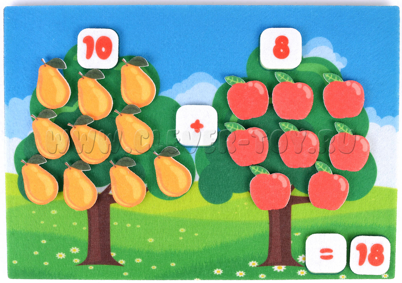 Данный набор поможет ребенку научиться выполнять простейшие арифметические действия. Складывать вычитать, сравнивать, считать до 20.