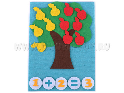 Нацепляя на волшебное дерево разноцветные фрукты, малыш будет учиться считать предметы. «Сколько красных плодов на дереве? А сколько желтых?» - вот только один из вариантов игры с мягким тренажером. А если нужно освоить сложение или вычитание? Не проблема! Помимо груш и яблок, в игре есть цифры и арифметические знаки.