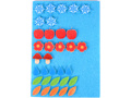• разнообразные игровые элементы 4-х сезонов – зелёные и оранжевые листики, цветочки, яблочки, снежинки, облака, тучки, холмики, грибочки, дождевые капельки, солнце, ёжик, снеговик, белочка, зайчик, снегирь;