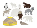 • белый медведь, волк, песец, пингвин, северный олень, тюлень, морж, полярная сова;