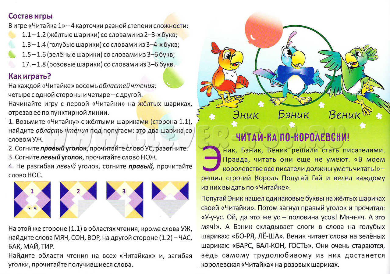 Состав игры (4 варианта "Читайка" разной степени сложности):