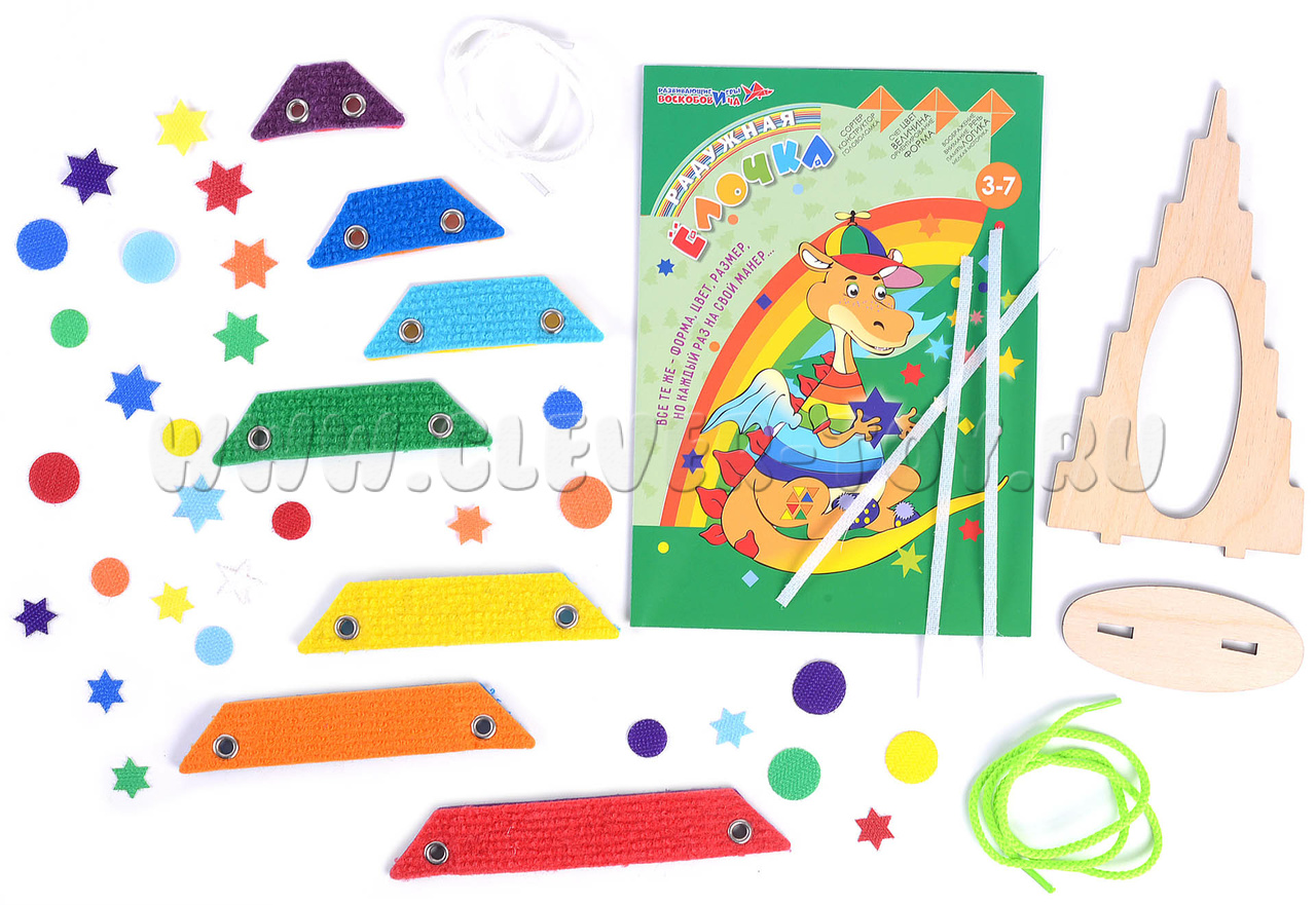 - 28съёмных элемента (звёздочки, кружки) 2-х размеров и 7 цветов радуги;
