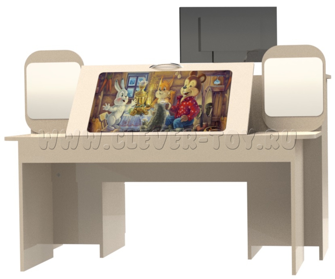 Профессиональный логопедический интерактивный комплекс с регулируемым сенсорным экраном ребенка (0-45°) с разрешением 22" под завязку укомплектован новейшим программным обеспечением, развивающими и обучающими играми и приложениями, дидактическими материалами и методическими пособиями для эффективного прорабатывания упражнений на развитие речи, шестью выдвижными ящиками для хранения и двумя зеркалами.