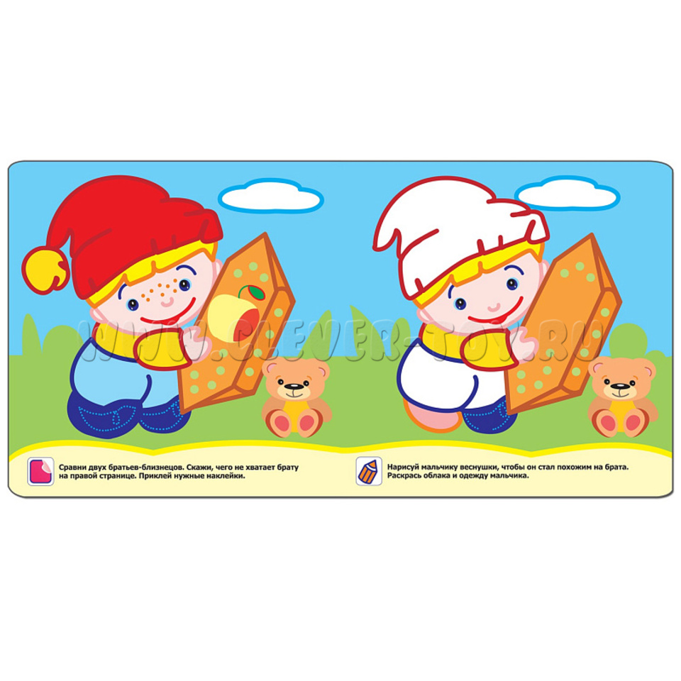 У раскраски яркий дизайн, крупные картинки и толстый контур, для того что бы ребенок учился раскрашивать, не выезжая за края. Книжка имеет дополнительную вкладку с двумя страницами наклеек, которые нужно приклеить, выполняя задания. Пособие состоит из 6 мелованных, матовых страниц.