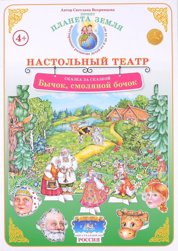 Настольный театр "Бычок, смоляной бочок" представляет собой объемных персонажей в декорациях. Ребенок сможет сам построить сказку по своим мотивам, а так же сыграть по плану который идет на обороте данного настольного театра.