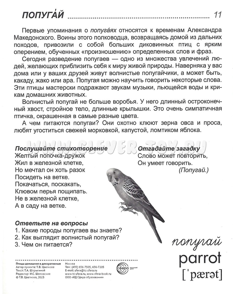 Набор карточек "Птицы домашние и декоративные" состоит из бесед, стихотворений, загадок и вопросов по теме. Комплект включает 16 цветных демонстрационных картинок с текстом на обороте, названия тем имеют перевод на английский язык.