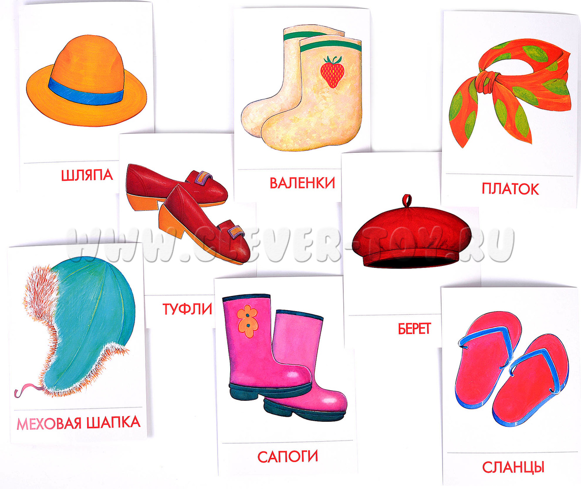 Дидактические карточки "Головные уборы. Обувь" (в плёнке)