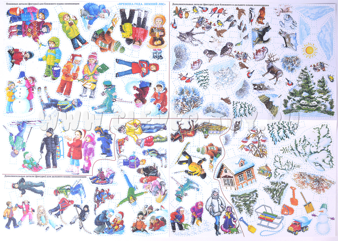 - плакат (А1) с изображением основных и дополнительных фигурок (100-150 штук) для вырезания и наклеивания на сюжетную картину;
