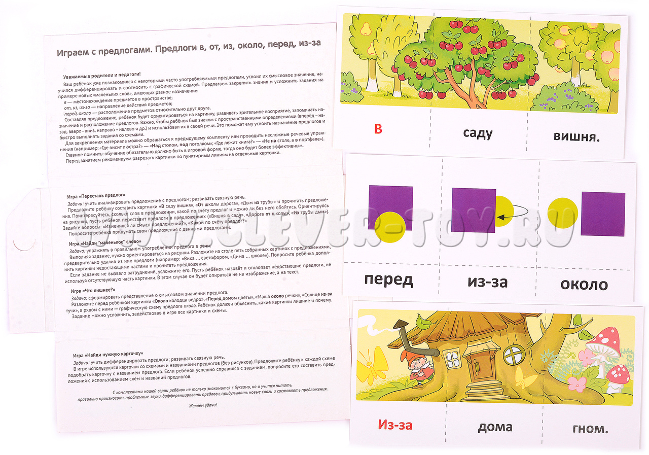 Набор карточек с рисунками. Играем с предлогами В, ОТ, ИЗ, ПЕРЕД, ИЗ-ЗА. ОКОЛО
