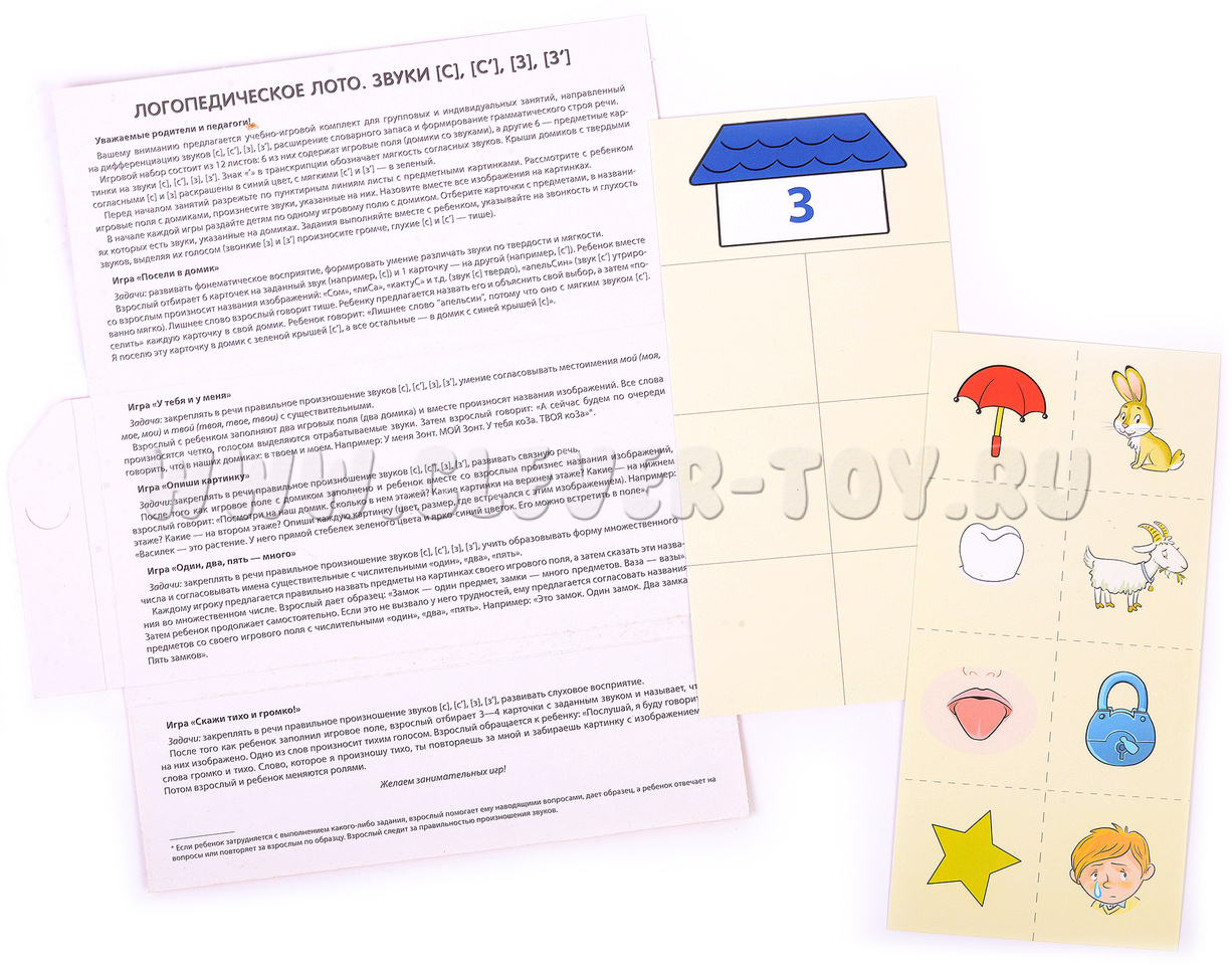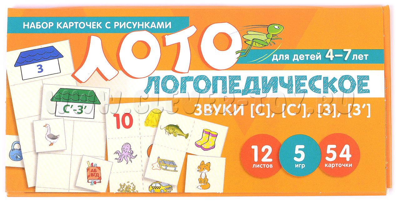 Комплект "Логопедическое лото. Учим звуки [С] [С’] [З] [З’]" состоит из 12 листов с 54 карточками и 5 игр. Дети в интерактивной форме учатся различать твердые и мягкие звуки, правильно их произносить и описывать картинки с помощью заданных слов. Пособие предназначено для педагогов и родителей, подходит для индивидуальных и групповых занятий.