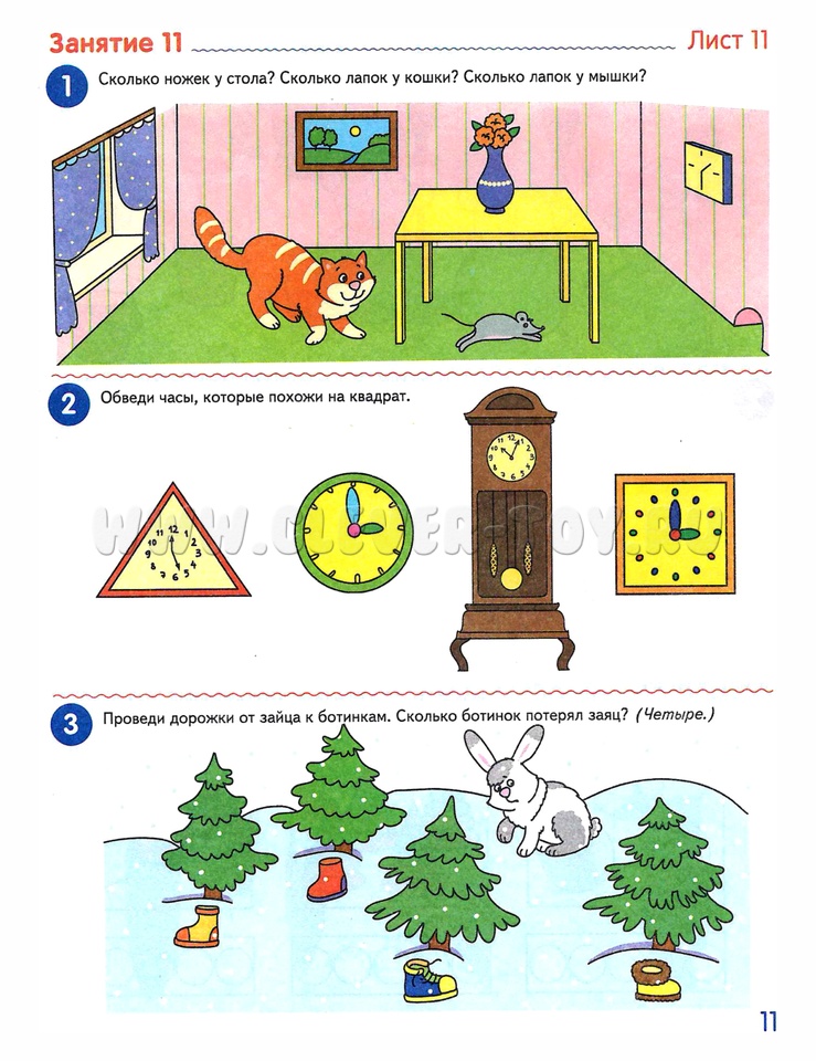 Как работать с тетрадью: Творчески подходите к сценарию занятия, дополняя его разнообразным материалом: природный материал для счёта (жёлуди, камешки, листочки и т.д.), набор геометрических фигур, компьютерные игры математического содержания и т.д. Переходите к следующему занятию, если ребёнок усвоил предыдущий материал. Доброжелательно и уважительно относитесь к ребёнку.