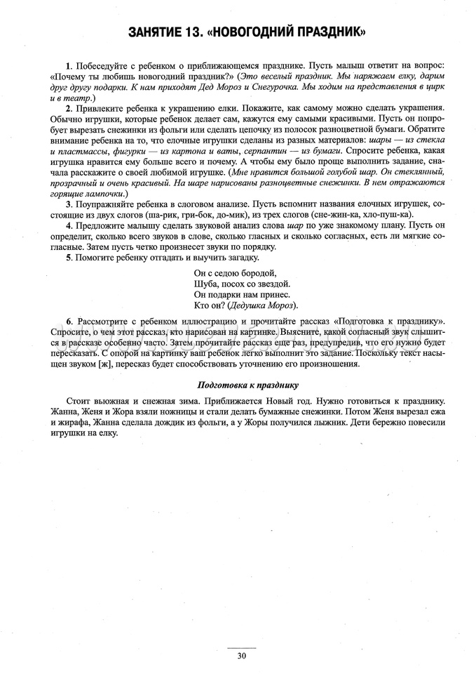 Тетрадь содержит 15 занятий, рассчитанных на неделю. Задания направлены на развитие связной речи, поддержание диалога, звуковой анализ слов, составление предложений и тренировку памяти. Также присутствуют пальчиковая гимнастика и подвижные упражнения.