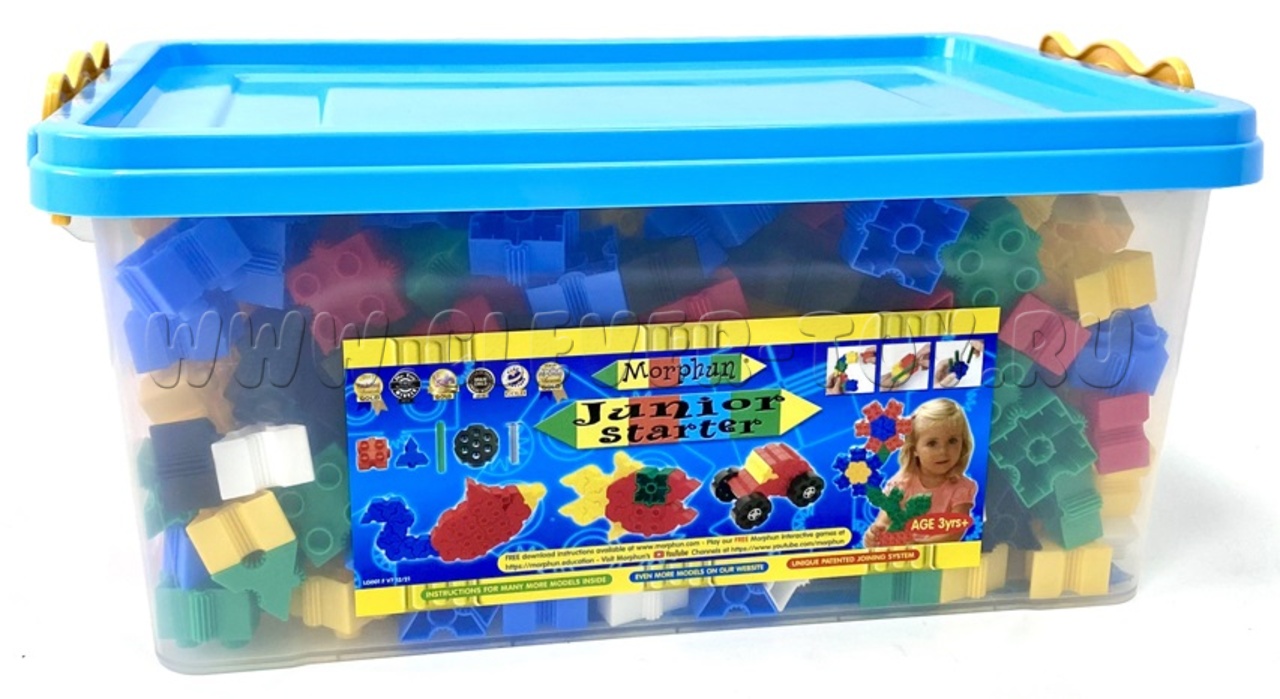 Конструктор Morphun Junior 500 Set упакован в ударопрочный пластиковый короб с крышкой и удобной ручкой для переноски и хранения деталей.