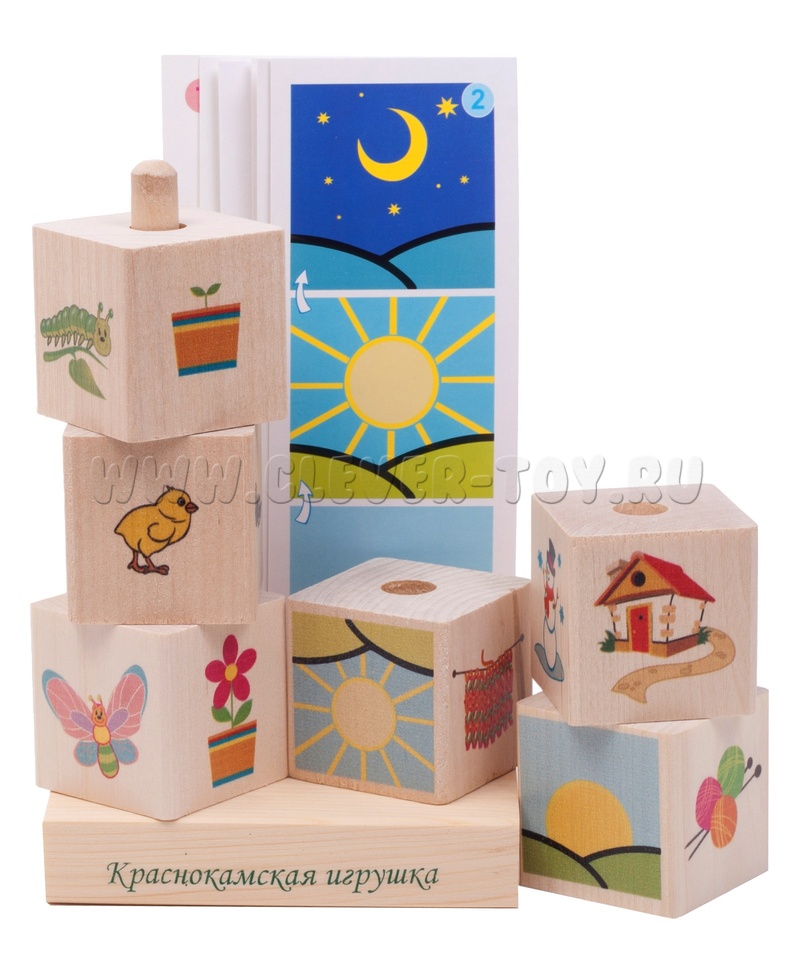 Цель игры: Необходимо найти и составить три кубика в точности с заданием, указанным в карточке-образце, то есть правильно воспроизвести последовательность события (действия) во времени.