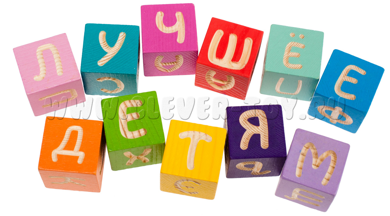 12 кубиков с буквами русского алфавита.