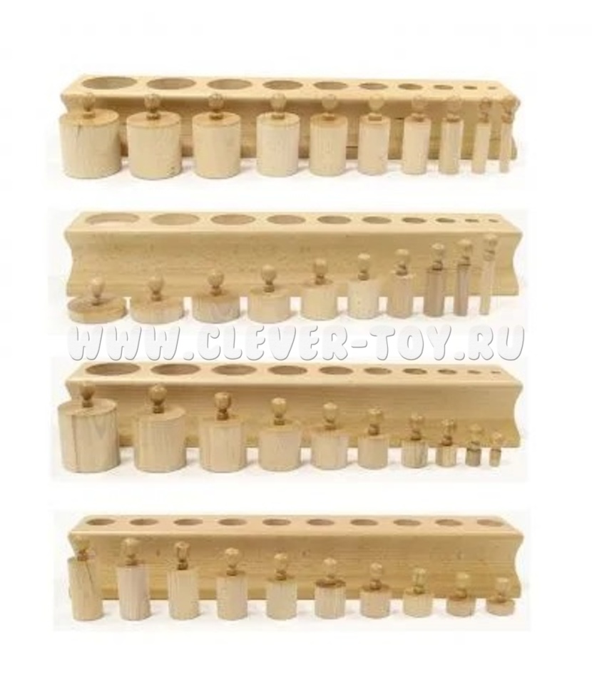 В комплект входит: 2.05 Блоки с цилиндрами - вкладышами. 2.05.1 Цветные цилиндры. 2.05.2 Проекции для цветных цилиндров.