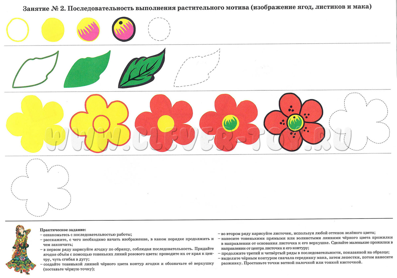 • Последовательность выполнения изображения ягод и листиков;