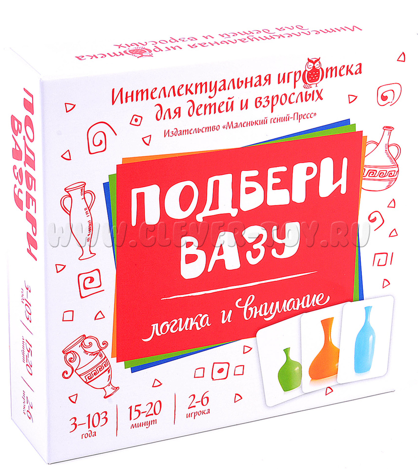 Развивающая игра "Подбрери вазу" подойдет детям старше 3 лет и поможет им в развитии произвольного внимания и концентрации, зрительного восприятия и логического мышления. Игра динамична - малыши не успеют заскучать или устать от умственной нагрузки, а количество раундов ограничено только желаниями игроков (которыми, кстати, могут быть и взрослые!).