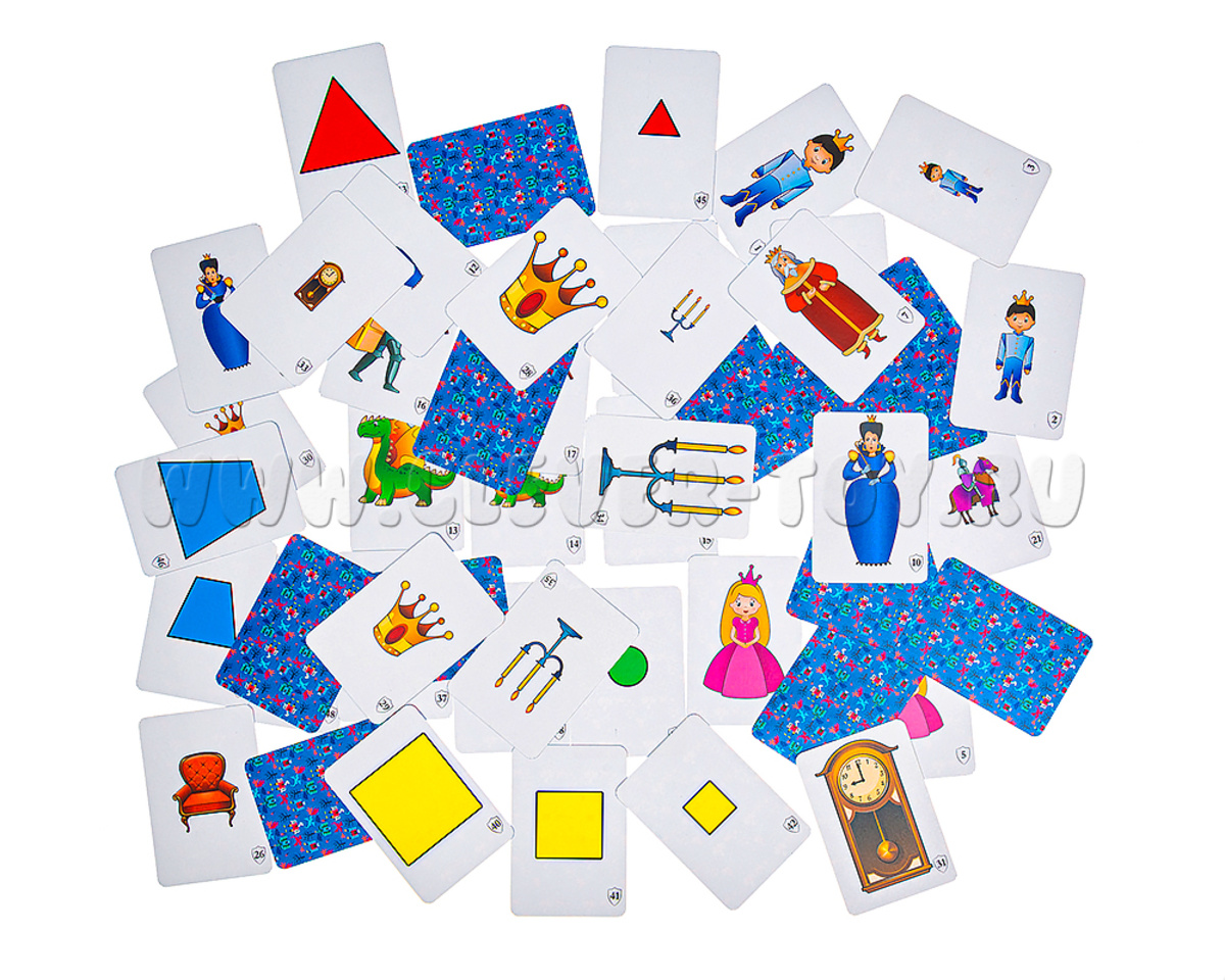 2. Игра «Замковый бой». Все карточки делятся между игроками. Каждый игрок складывает свои карты стопкой лицевой стороной вверх. Игроки одновременно выкладывают верхнюю карту своей стопки. Игрок, выложивший карточку с самым большим изображением, забирает себе все карты…