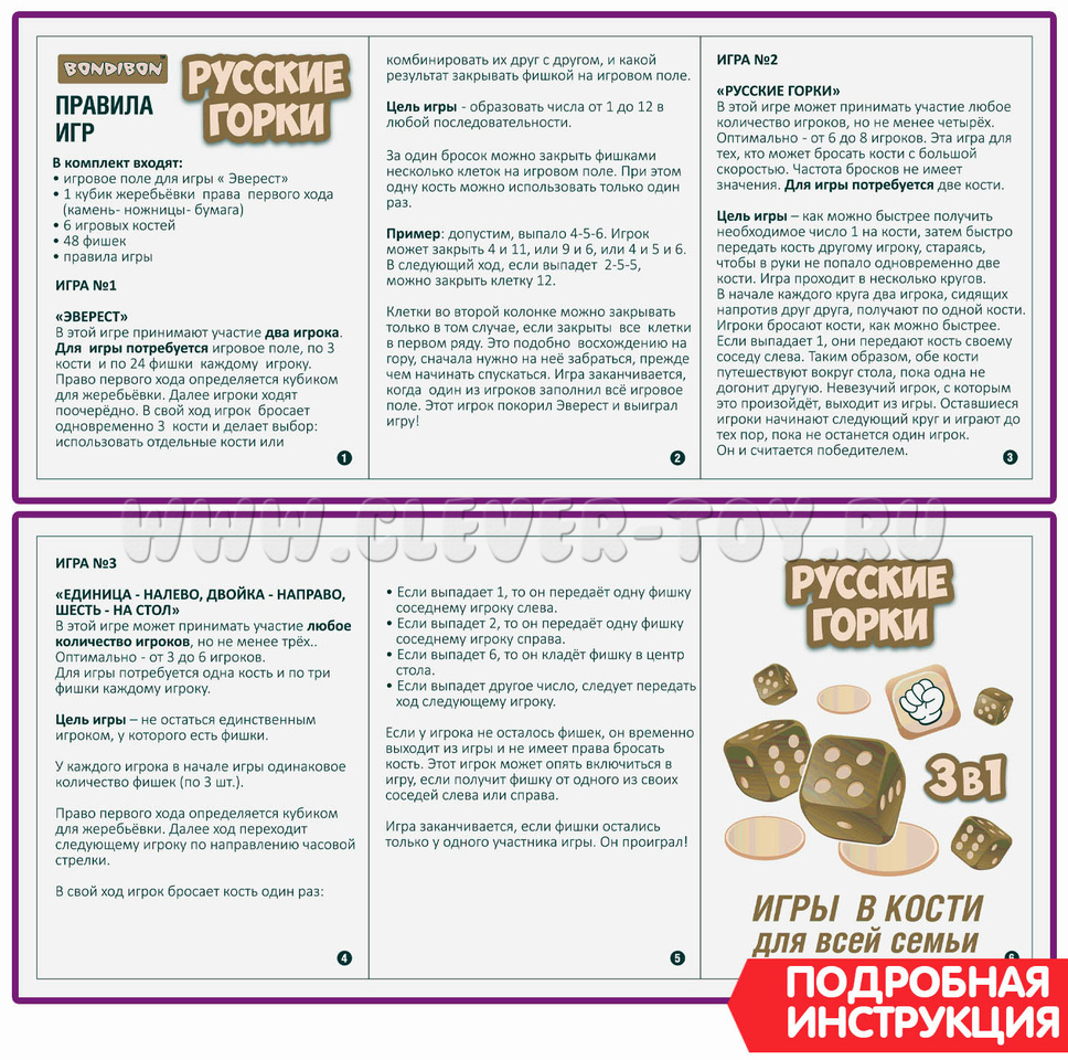 Настольная семейная игра в кости 3в1 "Русские горки"