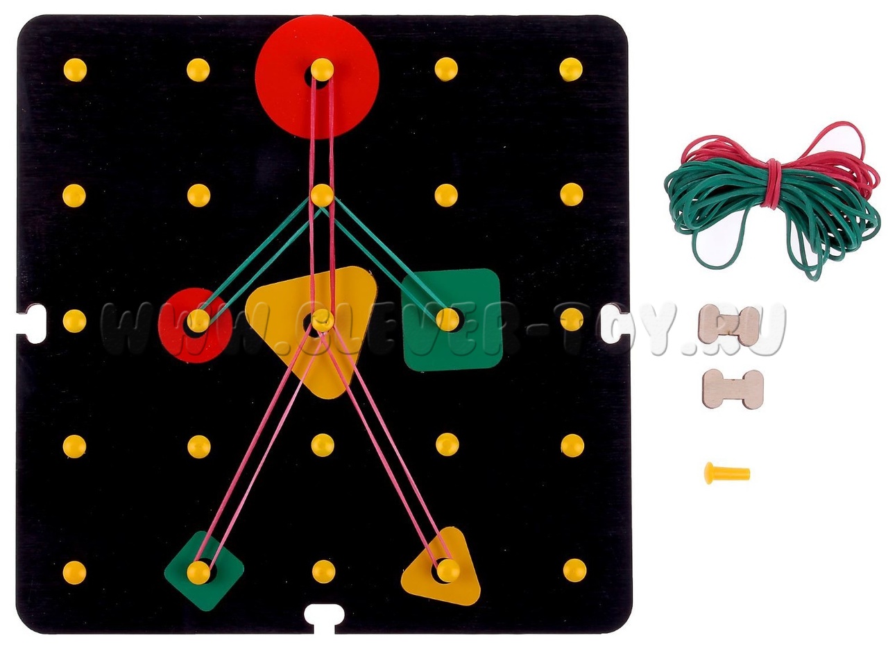 Благодаря математическому планшету у ребенка появляется возможность рисовать и конструировать с помощью игрового поля и резиночек на нем.